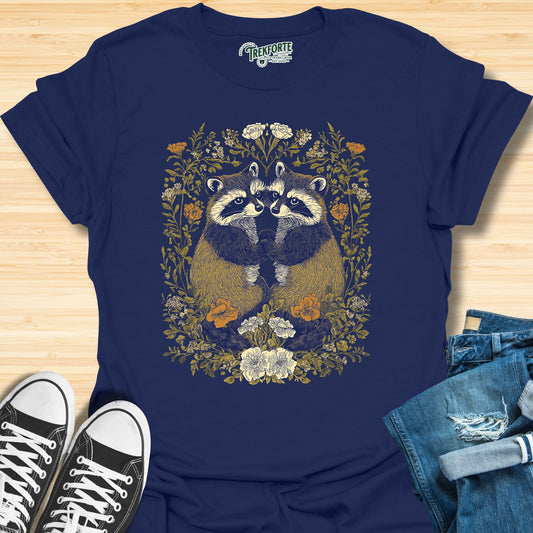 Boho Floral Raccoon Retro T-Shirt, Unisex Nature-Inspired Graphic Tee