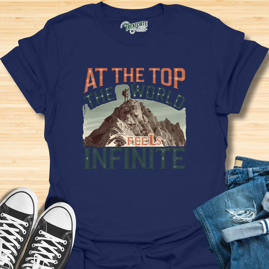 At The Top The Worlds Feels Infinite Graphic T-Shirt | TrekForte Adventure Apparel
