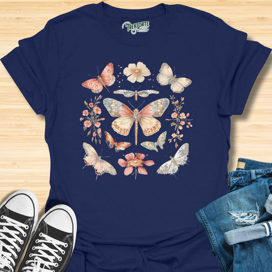 Boho Retro Butterflies and Spring Flowers T-Shirt, Unisex Nature-Inspired Graphic Tee