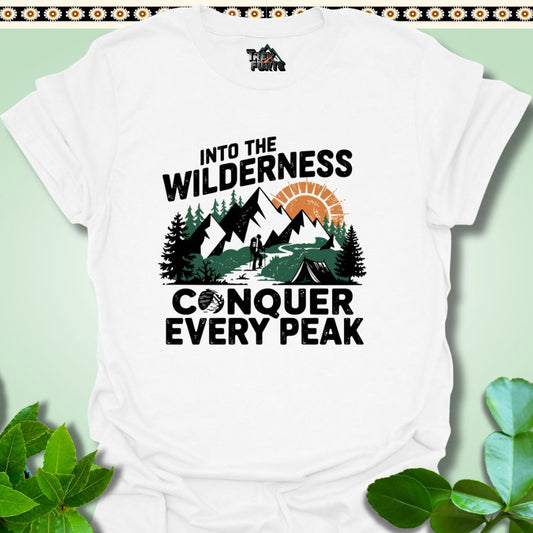 Into the Wilderness Conquer Every Peak Funny T-Shirt | TrekForte Apparel