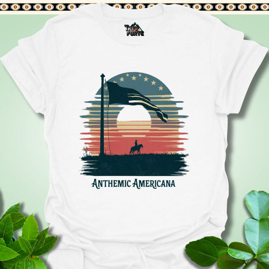 Sunset Frontier Anthemic Americana Funny T-Shirt | TrekForte Apparel