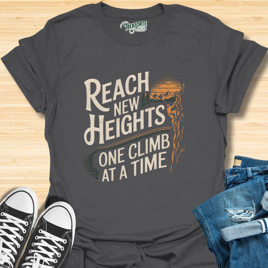 Reach At New Heights One Climb At a Time Graphic T-Shirt | TrekForte Adventure Apparel